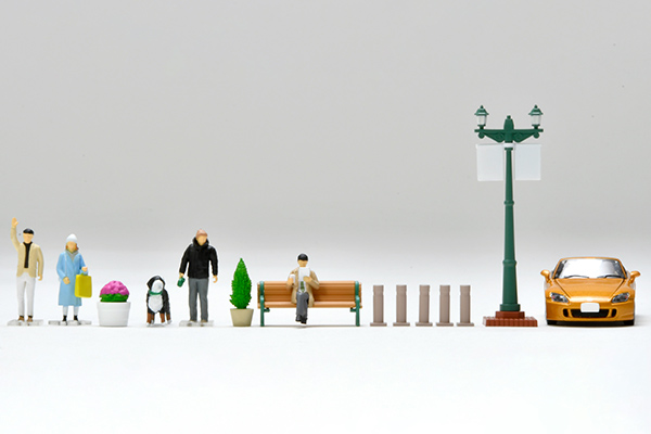 今回は「都会の街角」をテーマとしたフィギュア・小物のセットです。