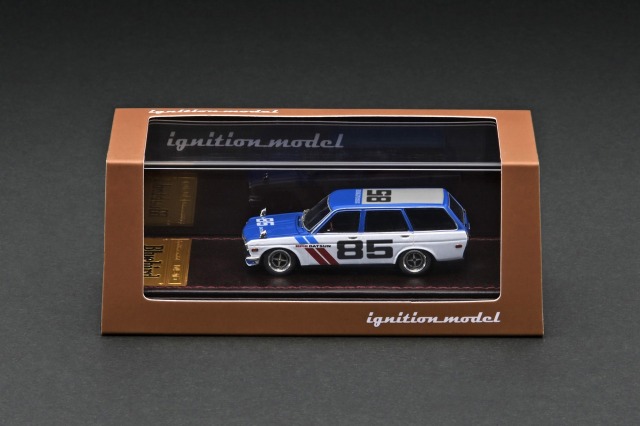 BREカラーの後期型ダットサン ブルーバード510 ワゴンを1/64スケールレジン素材でモデル化。