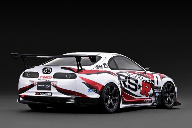 レーシングドライバー「織戸 学」選手が2010~2011年のD1に参戦し初優勝を達成したマシン、RS★Rカラーをモチーフにした「Supra RZ (JZA80) 」を1/18スケールレジンモデルで再現。