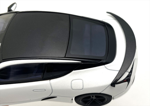 モデルでは、特別仕様車専用の「バンパーカナード」や「CFRPリヤウイング」、「鍛造アルミホイール」の再現は元より、専用エクステリアカラー「HAKUGIN(白銀)」や専用インテリアカラー「KACHIIRO(勝色)」、ルーフやウイングのカーボン再現にも注力。