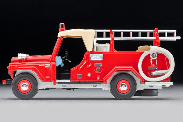 TLVでは2006年に登場した日産パトロール ポンプ消防車ですが、今回は赤色灯を新規パーツ化、銀色の防火服を身にまとった消防士のフィギュアが付属します。はしごやとび口、ベージュのポンプなどの小物パーツにもご注目ください。「LV-68c スバル サンバー ポンプ消防車(フィギュア付)」(別売り)や「LV-N24c 日野TC343 はしご消防車(尾鷲消防署)」(別売り)などと組み合わせるとより一層コレクションが深まります。