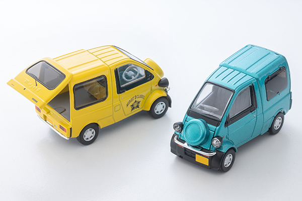 N362aがエメラルドグリーン、N362bを黄色としました。特に黄色(N362b)はオプションのグラフィックを再現したのが特徴です。初期型の特徴でもあるスペアタイヤを前側に置いた個性的なデザインは、発売中の#カースナに付属のフィギュアとも相性抜群。