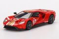 GT40と同様のアラン・マン・レッドにゴールドのストライプを配したレトロ感のあるカラーに、フォードGTの美しいフォルムが絶妙にマッチしています。